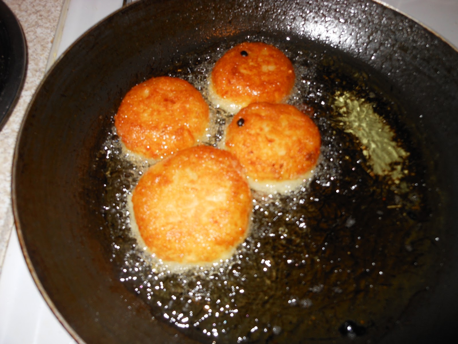 3. Heat oil in a pan and fry this flatten ball on medium flame.Once golden brown,flip it to cook on the other side.